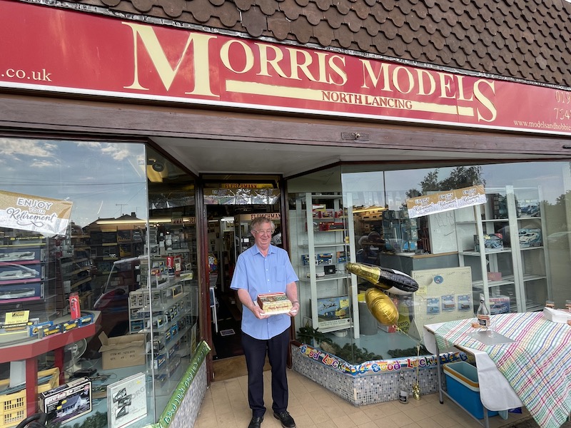 Firstly a shout out to Brian Jackson for his well earned retirement as proprietor of Morris Models, the fabulous model shop he’s run in Lancing, West Sussex since taking over the business in 2004. Brian has decided it’s time to retire and sadly hasn’t been able to find a buyer for the business so another much valued independently owned model shop has closed its doors for the last time. However it was a fabulous last day at the end of last month and a great privilege to attend a little farewell ceremony and wish Brian well in his retirement.