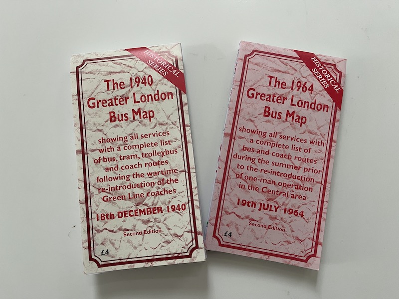 It’s good to see Mike Harris continues to update his repertoire of old London Transport bus maps. The two latest ones to hit the map shelf are now in their second editions for 1940 and 1964. They incorporate new information that has come to light since publication of the first editions nearly 20 years ago. I’m particularly intrigued by the 1964 map as it brings back many childhood memories of how buses used to be in the capital – so much simpler to understand, but on the other hand reminding me of vast areas of London were unserved by buses resulting in long walks to the nearest bus stop.