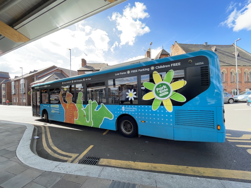 ….. which is more than you can do on Stagecoach’s buses using Cheshire East and Chester Council’s specified livery for that city’s Park & Ride bus route.