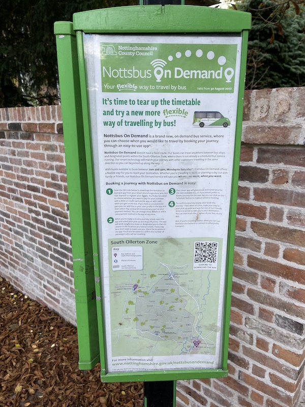 …. but also displaying a leaflet about the new service aimed at the South Ollerton Zone – I didn’t see one for the North Zone but am sure there is one.