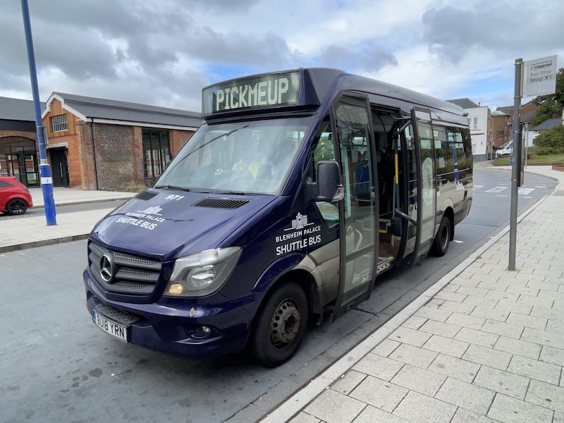 …. and Ranjit was soon with me in his minibus with vinyls for the Blenheim Palace Shuttle Bus.