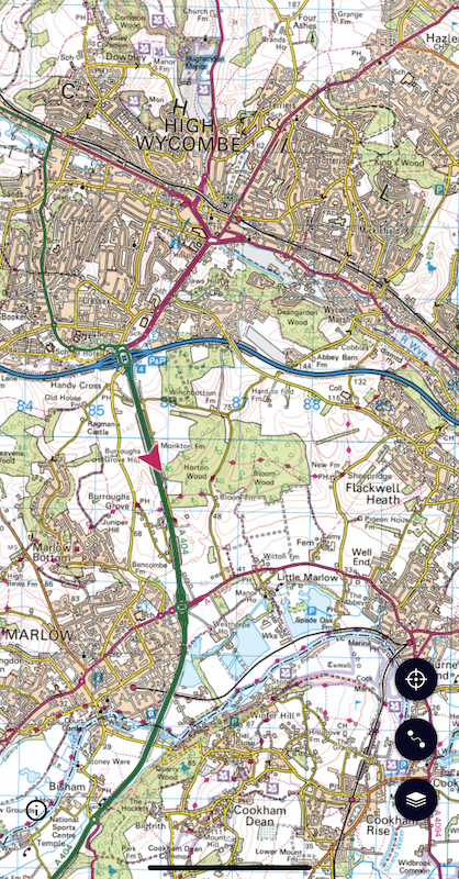 We were doing well following the SatNav for Asda until reaching the roundabout for the A404 and M40 from where we were wrongly sent down the A404 towards Marlow.