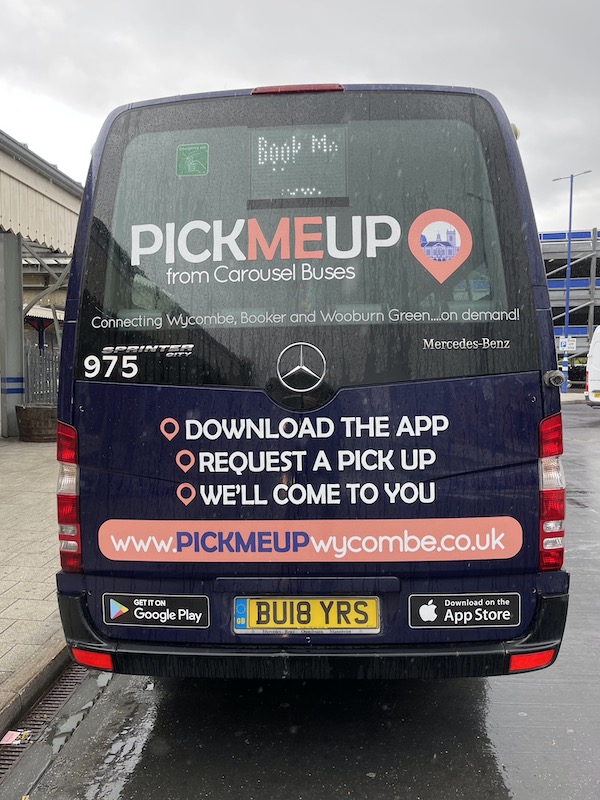 Meanwhile Tuesday saw me back in High Wycombe for a couple of first day rides on Carousel’s PickMeUp operation funded by Buckinghamshire Council and £736,000 from the DfT’s Rural Mobility Fund; and as mentioned in Tuesday’s blog maybe a contribution from Berkeley Homes.