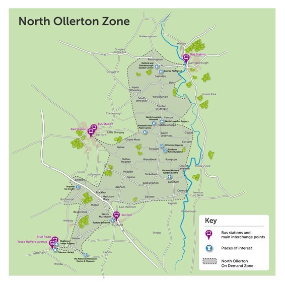 Funded by £1.5 million from the DfT’s Rural Mobility Fund it provides the usual “on demand bus from virtual bus stops” across two largely rural areas in east Nottinghamshire; zone 1 from Gainsborough and Retford south to Ollerton and the small market town of Tuxford and zone 2 from Ollerton and Tuxford south to Newark-on-Trent.