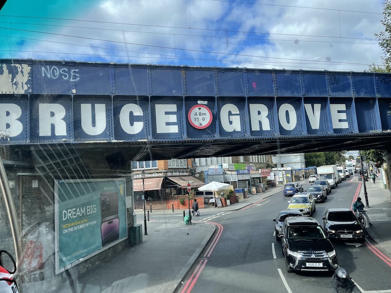 2. Difficult to tell what station we passed next as we turned LEFT?? into a road called Bruce Grove …