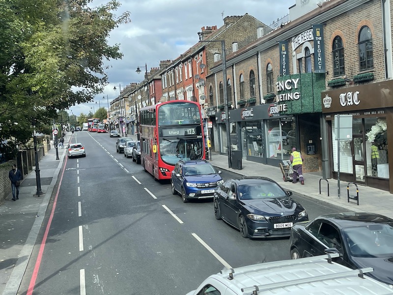 Before joining the disorderly queue at this busy stop I wandered through to Ilford’s nearby layover point but was somewhat surprised not to find a bus showing 123 in the line up.