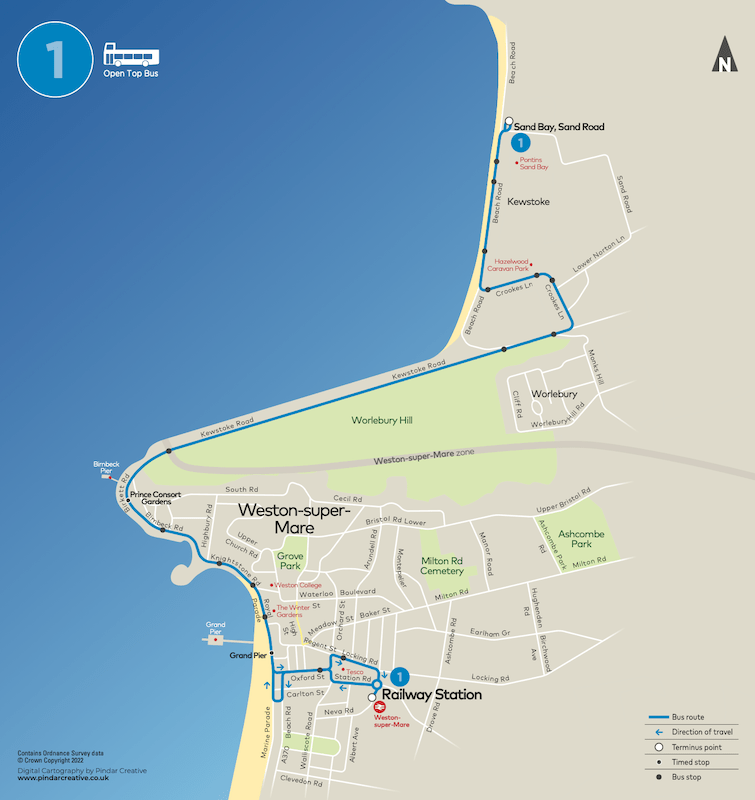 This route offers some great views on its way out to Sand Bay to the north of the town via Kewstoke and close to Worlesbury – hence its all year round operation to serve those residential areas.
