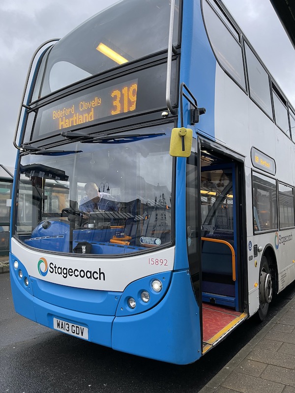 I began my trip on route 319 which comprises four journeys a day from Barnstaple to Hartland with a fifth mid morning journey running just from Bideford to Hartland.