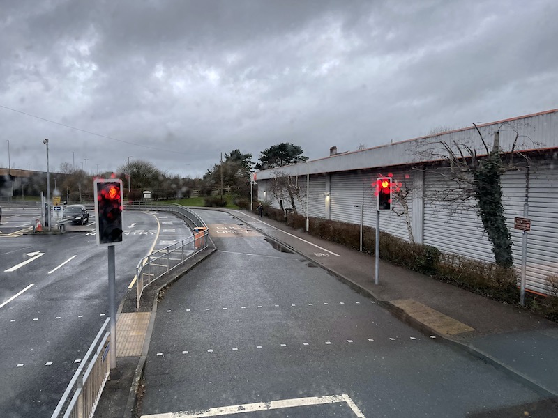 Leaving Barnstaple involves using the traffic light controlled single track bus only section of road by the town’s rail station which uses a short alignment of the long closed railway line to Ilfracombe.