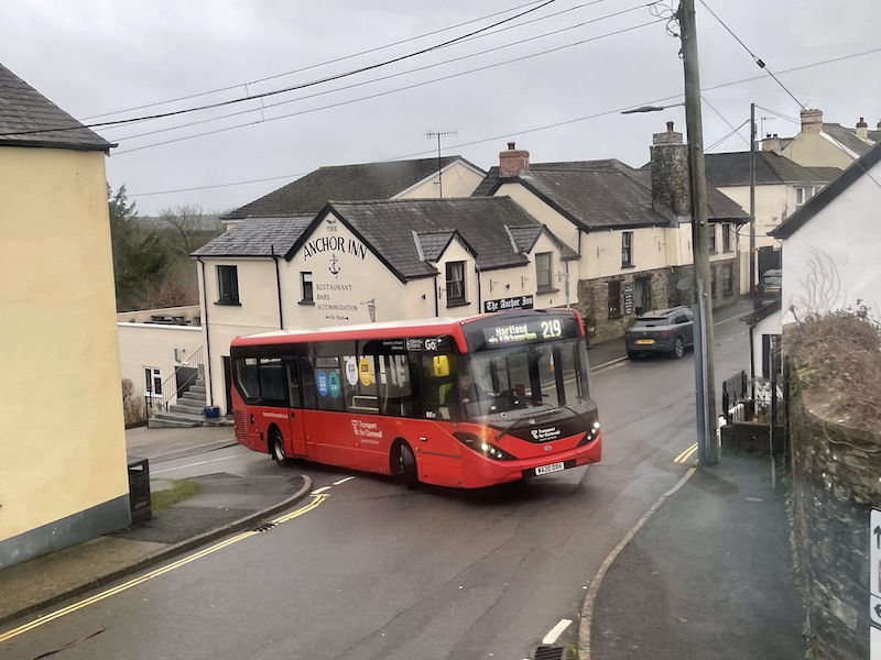 On Saturday it was just me on board for the final ten minutes of the journey to reach the 319’s terminus at Hartland at 10:07 and just as we arrived in the village the Go Cornwall bus also appeared on the connecting route 219 …