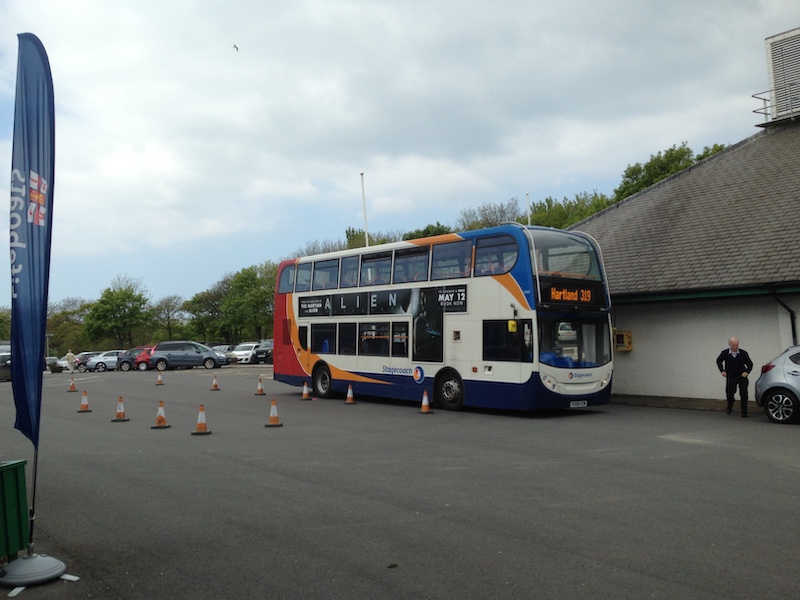 Before reaching the main bus stop known as The Strand in Bude we did a quick driver changeover in the car park by the Tourist Information Office and arrived on time at 11:03.