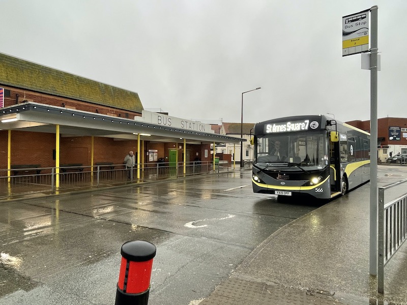 My travels took me to the rather traditional and old fashioned looking bus station at Cleveleys on the coast road to Fleetwood, which sees a variety of bus routes as well as the tram linking it to Blackpool, with routes 3, 4 and 7 crossing the town with the former two continuing to the shopping area (and a large Tesco) at Mereside and the latter to St Annes,
