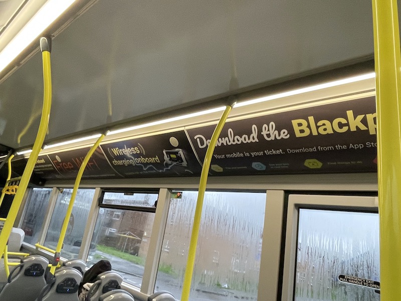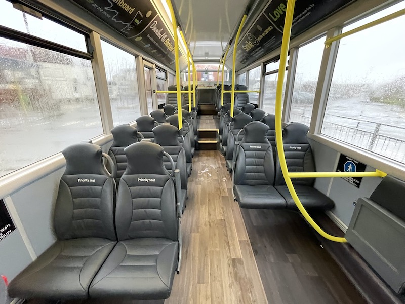As well as the livery, bus interiors are also grey and look smart with comfortable seats and the yellow stanchions and poles all seems to fit in with the corporate colours as do the messages on the cove panels although I found them to be a bit on the ‘shouty’ side of communication…