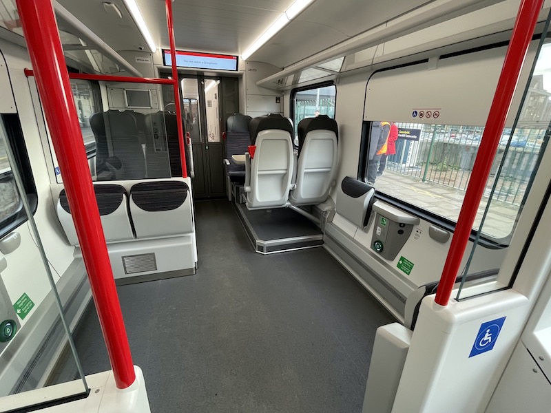 Hmm, to be fair I think the only slightly dodgy design flaw is the tip-ups in the vestibules, and that’s not a deal breaker. The step-ups into some of the seats are needed because these seats are raised to clear the bogie on an otherwise lower than normal floor base (which is needed to get the level boarding). The lower floor, big windows, squarish profile and minimalist design make the trains feel very spacious and have a definite European feel. The other thing of note is that when in electric mode they accelerate at the same rate as a Victoria line tube train, which Anglia drivers enjoy demonstrating…