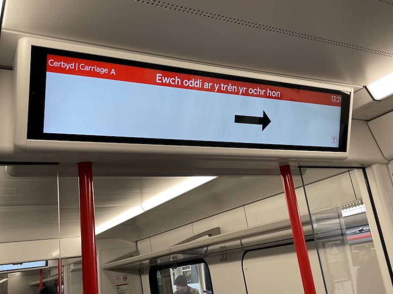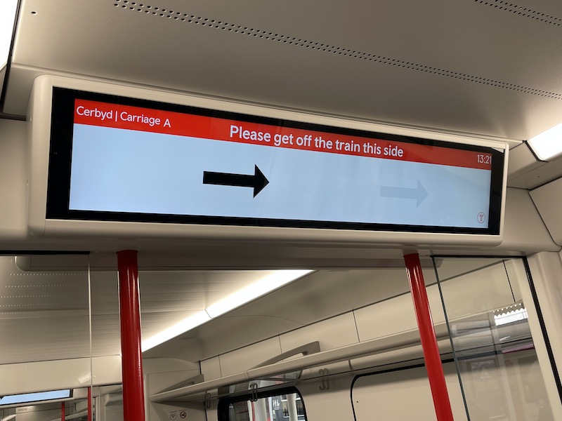 The large signs on the outside give the destination, the carriage letter (A, B, C or D) and the next station. Being digital it’s difficult to get a photograph.