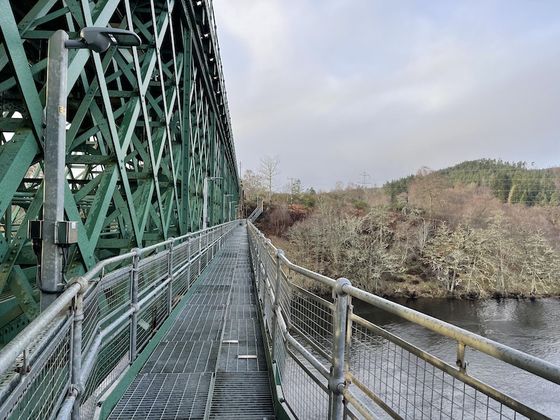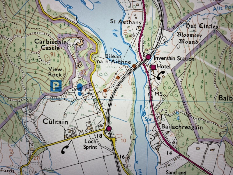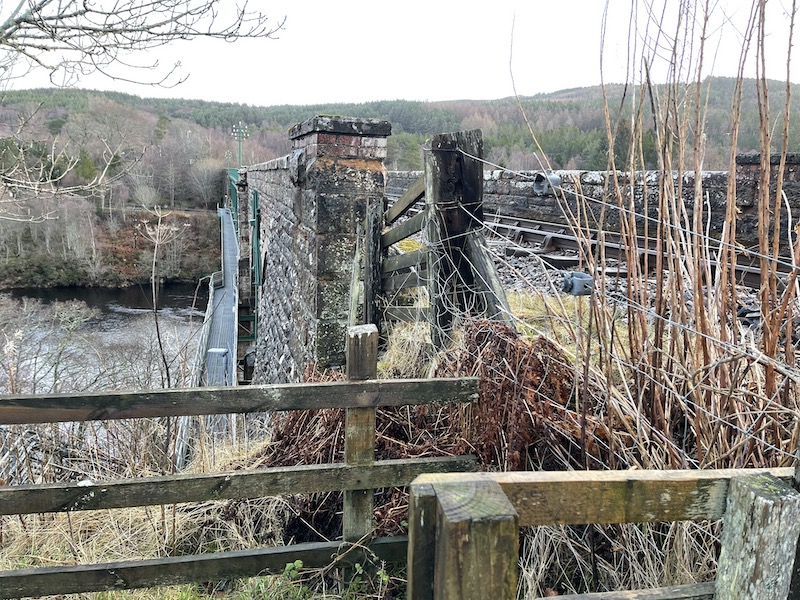 … on a footbridge at a lower level to the railway bridge to the next request station south called Culrain.