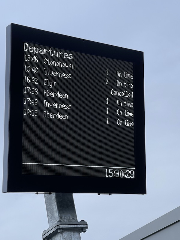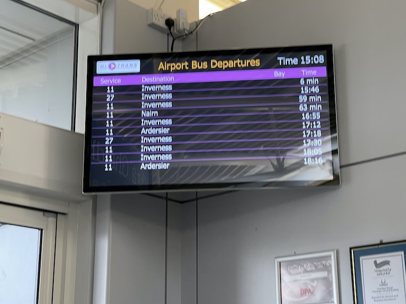 The screen showing upcoming bus departures confirmed one was due in six minutes which would have been ideal and got me into Inverness at 15:51 at a cost of £5.30.