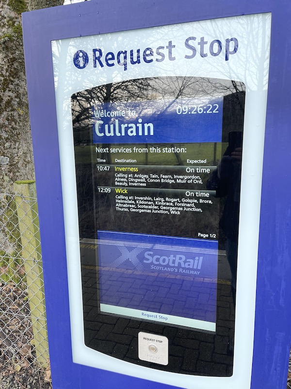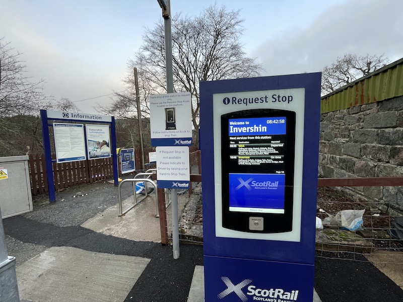 Following the trial of the Request To Stop button at Scotscalder station the system was extended to the seven other request stations on the Far North Line in December. I enjoyed another trip on this wonderful line last Thursday with ace YouTube Creator Geoff Marshall who is making a video about this development for release shortly.