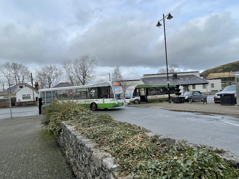 It was then on to Corwen where we picked up one passenger on the outskirts of the town and she and the two from Mold all alighted at the terminus. All told that’s eight passengers which, judging by the numbers on board the three buses we passed in the other direction looked about average for current loadings.