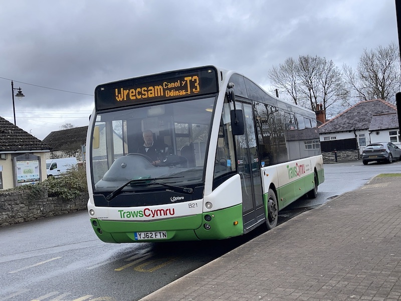 Services such as these take time to bed in and to be understood. We are nevertheless heartened by the buzz the T8 has caused locally and by the initial loadings. This week, there have been standing passengers from the *west* of Mold towards Chester. Yes, the weather during the early part of this week has been kind for February and, yes, it’s half term hereabout. The last time we had standing passengers on the predecessor *twice-a-day* X1 (Ruthin – Chester only) was in December 2019 immediately before Christmas. (The service was suspended during much of 2020, owing to the health emergency, BTW.)