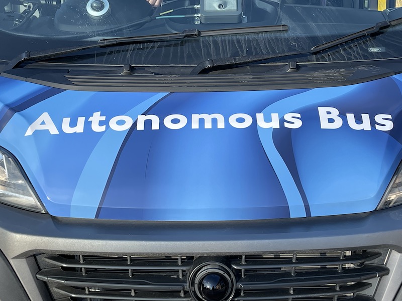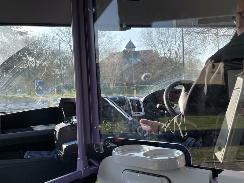 And sure enough, right on time the bus appeared with Michael overseeing the controls in the cab as the short section of road around Bee House itself where the bus stop is located isn’t programmed for autonomous driving.