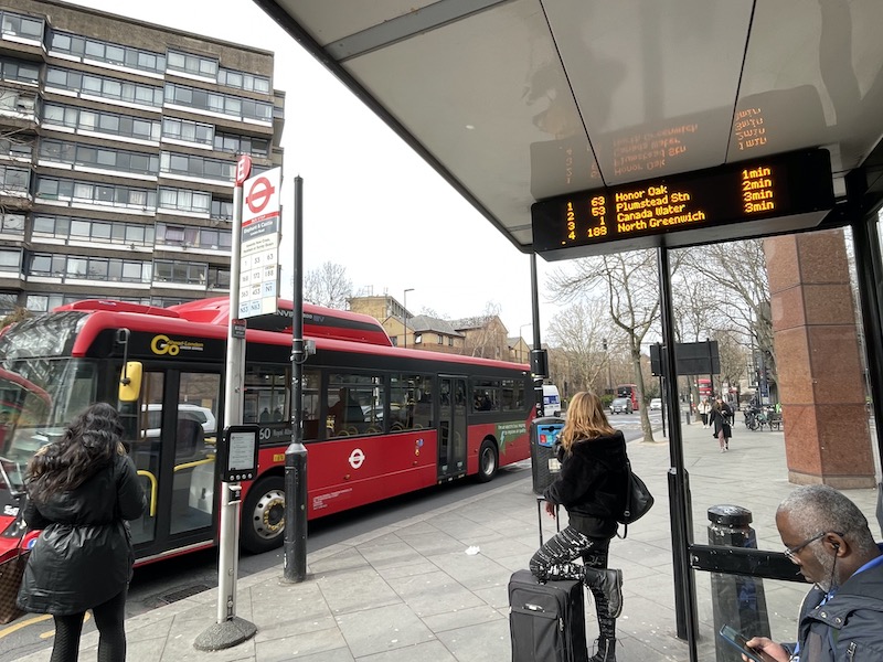 14. The congestion charge introduced 20 years ago was backed up by the introduction of 300 extra buses with new routes and increased frequencies. Ken Livingstone took great interest in this and knew he had to do this to sell it to Londoners. This created new links and saw a 33% increase in bus travel in the zone. By contrast Khan shows no interest and can only spout out parrot fashion about the harmful effects of toxic air. To those of us living under the flight path to Heathrow his ULEZ expansion won’t make a blind bit of difference ! All Khan and his team can come up with are gimmicks. As Roger points out most of the features introduced on the ‘state of the art’ buses on the 63 (which incidentally don’t have a rear window to assist with interchange) have been specified by operators across the country for years and London is just catching up . If Khan wants to get people back on board he needs to restore bus lanes on Farringdon Road for instance and restore bus lanes across all the capital’s bridges starting with Waterloo. He also needs to tell his press team to stop telling us that buses are only there for people who can’t walk or cycle. How about the needs of tourists ? Perhaps they don’t count as they don’t have a vote. But outer London does and the electorate there can tell him what they think of his approach to ULEZ when they vote at the ballot box next year.