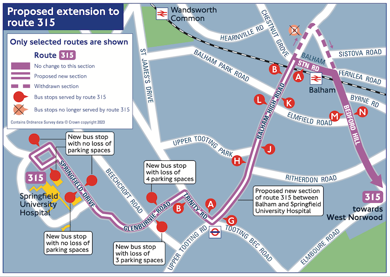 …. and a route extension in Wandsworth from Balham railway station to a nearby hospital.