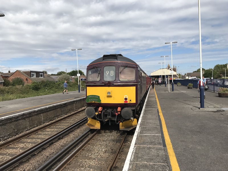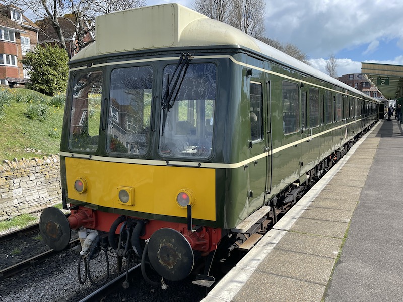 Nothing happened during the following three summers due to Covid but this year Swanage Railway’s diesel train is running three return journeys about every two hours between Wareham and Swanage (with a fourth – starter and finisher from/to Corfe Castle) on Tuesdays, Wednesdays, Thursdays and Saturdays until 9th September.
