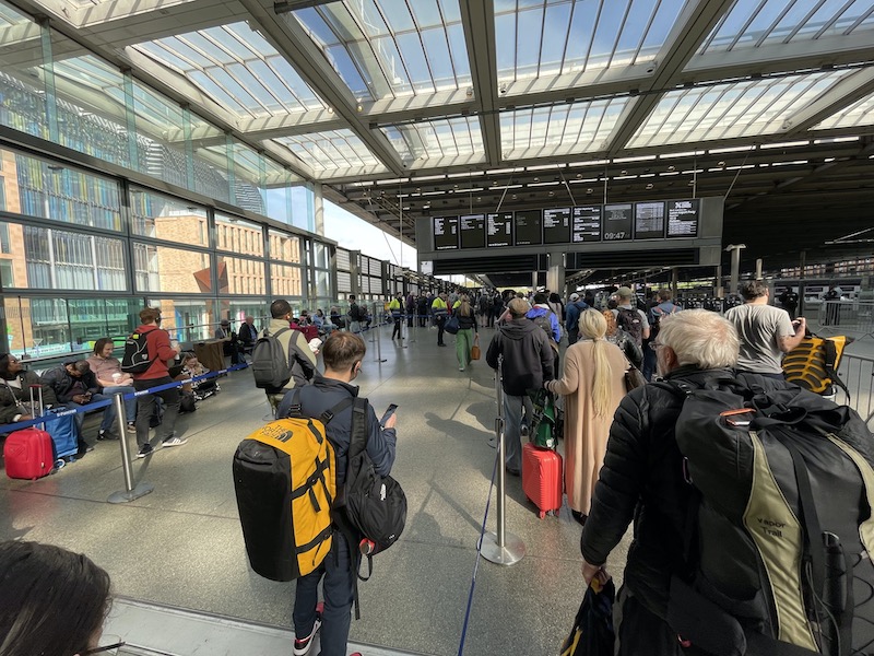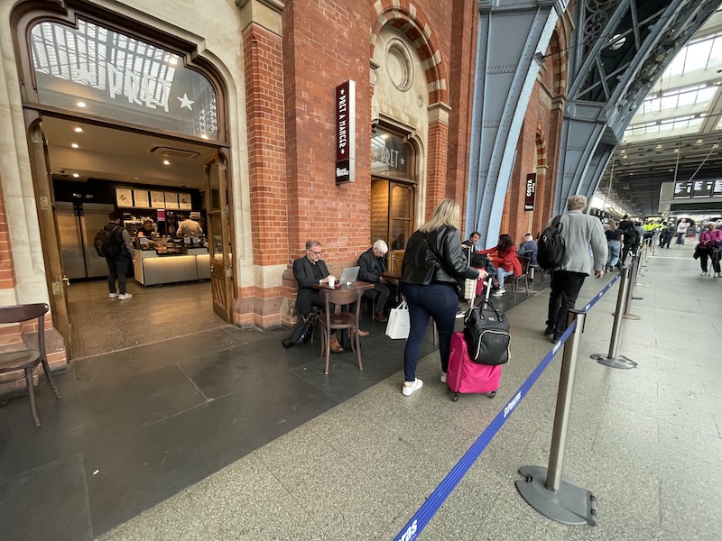 … and furthermore, passengers taking advantage of the seats on the right hand side by the arrival gates have to walk all the way around to reach the start of the queues and avoid the rather unsightly metal barriers. When I was there a couple of weeks ago there were at least half a dozen Network Rail staff in high-viz marshalling everyone. It didn’t come across as very friendly.