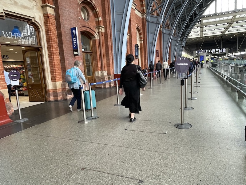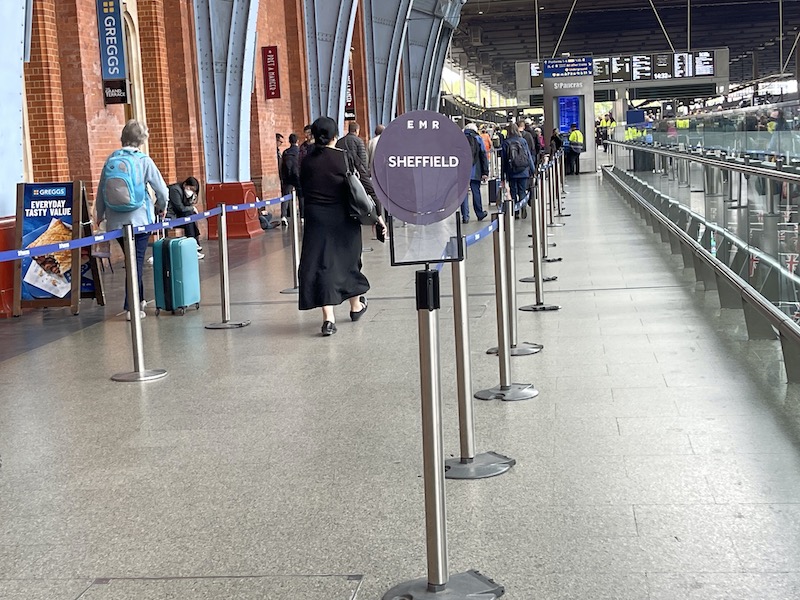 Now I see EMR have gone one step further by introducing queueing lanes for the departures to Sheffield, Nottingham and Corby each half hour and woe betied you if you get in the wrong queue – even though they all end up in the same place by the ticket gates.