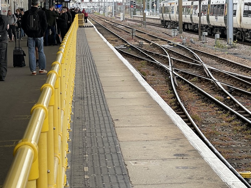 Also at Cambridge I see there’s been a risk assessment of the section of the long joint platforms 1 and 4 immediately outside the entrance from the ticket office where a large yellow barrier has now been erected.