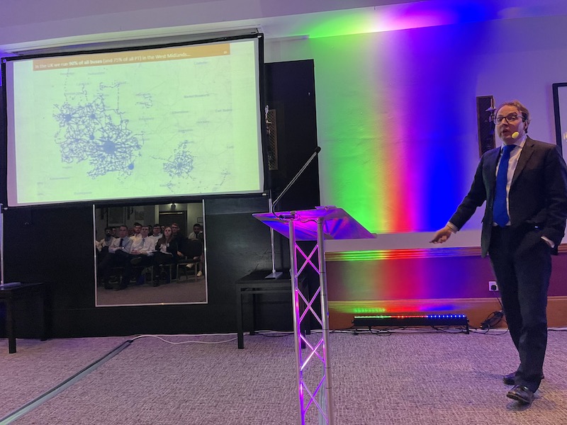 David Bradford, NatExWM’s managing director, kicked off Thursday’s session with an upbeat look at the outlook for buses in the region, but he didn’t sugar coat the tremendous challenges the company faces, not least rising costs (a recent six day strike by drivers secured a 21% pay deal as well as increased prices of fuel, energy and parts) while post Covid revenue is static mainly due to a sluggish return from concessionary passengers but thankfully fare payers are back towards 100% pre Covid.