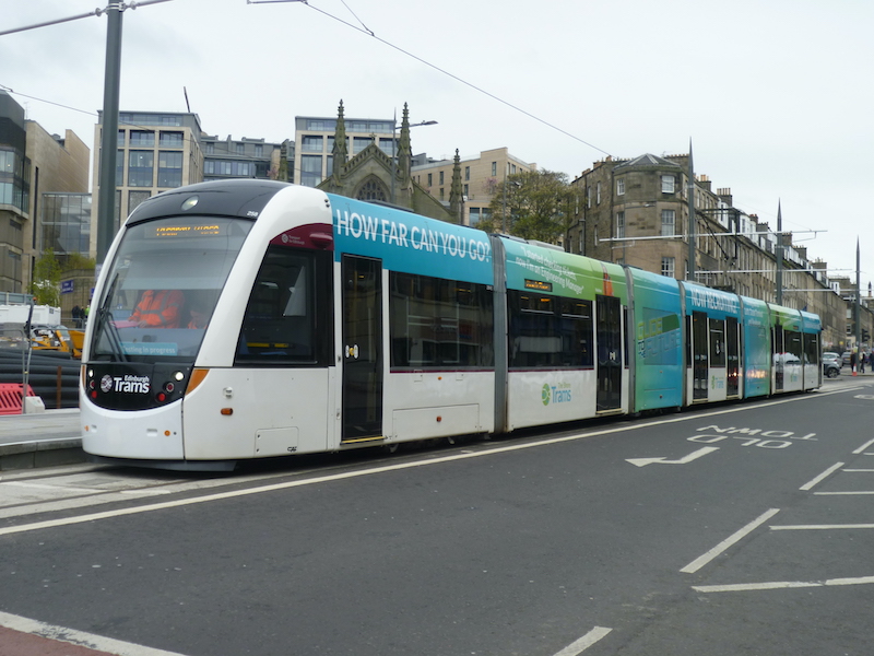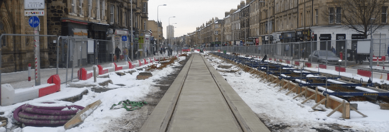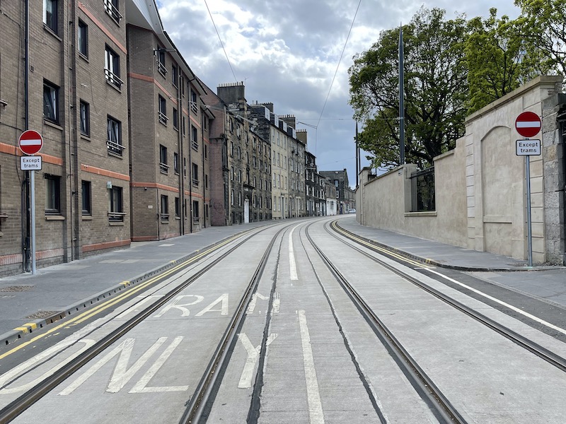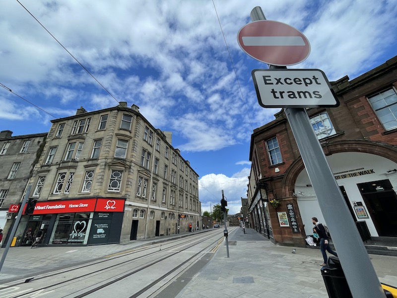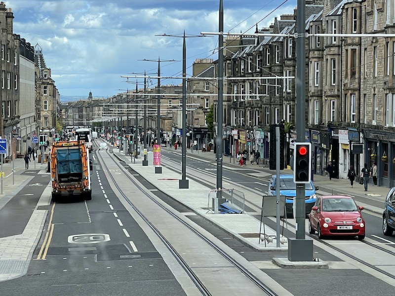 After Constitution Street it’s on to Leith Walk and the 1km access into Edinburgh city centre where trams mix with all traffic using the centre of the road and where three tram stops have been constructed.