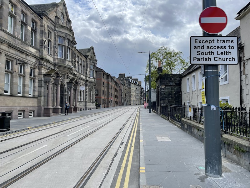 To assist with routing the new extension Constitution Street in Leith has been closed to all traffic northbound except trams ,,,,