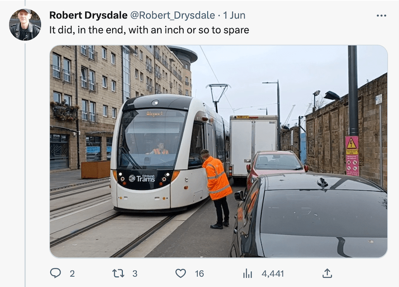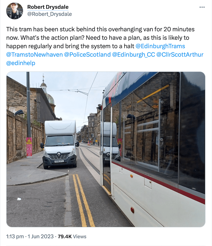 During the test running some problems arose with other road users either not realising trams were now on the tracks or just being bloody minded in how they park as captured on social media last week.