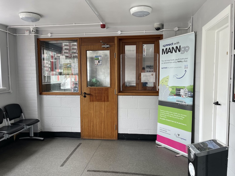 Ronaldsway Airport is located on the Island’s south east coast six miles south of Douglas and my visit began with a ride on the bus route that goes from there to Castletown and Port Erin on the south coast. However, before that I picked up a timetable book from the information point in the airport, rather than the Isle of Man Transport desk (shown above) which was unmanned.