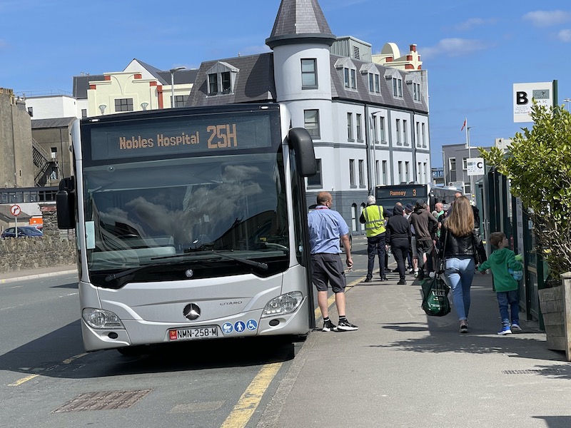 … where the bus waits for seven minutes before continuing on to Port St Mary returning back as a route 1H (H for Hospital) via Port Erin to Douglas and Nobles’s Hospital