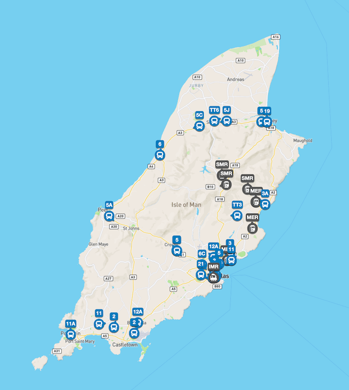 One thing I soon noticed while travelling around is the lack of open data meaning you can’t use Google to plan journeys or see departures from bus stops – there are no bus stops marked on Google maps. However there is a fantastic website findmybus.im …