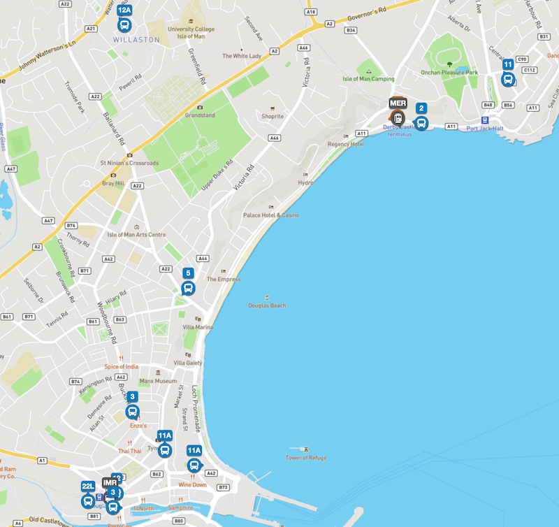11A – as the 11 but runs via Port St Mary rather than Colby (hence the A)