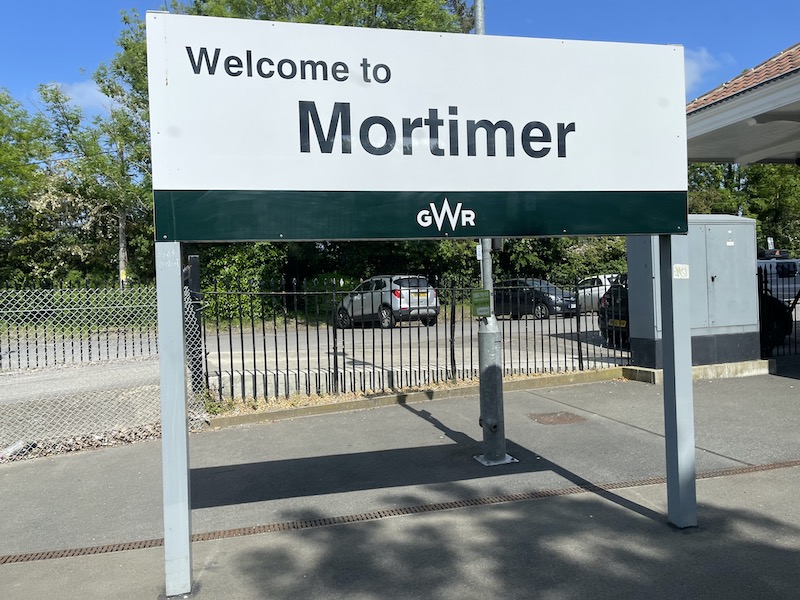 Travelling along the Reading to Basingstoke line to sample the new Reading West station I was intrigued to see the huge station name signs on the platforms at Bramley and Mortimer.