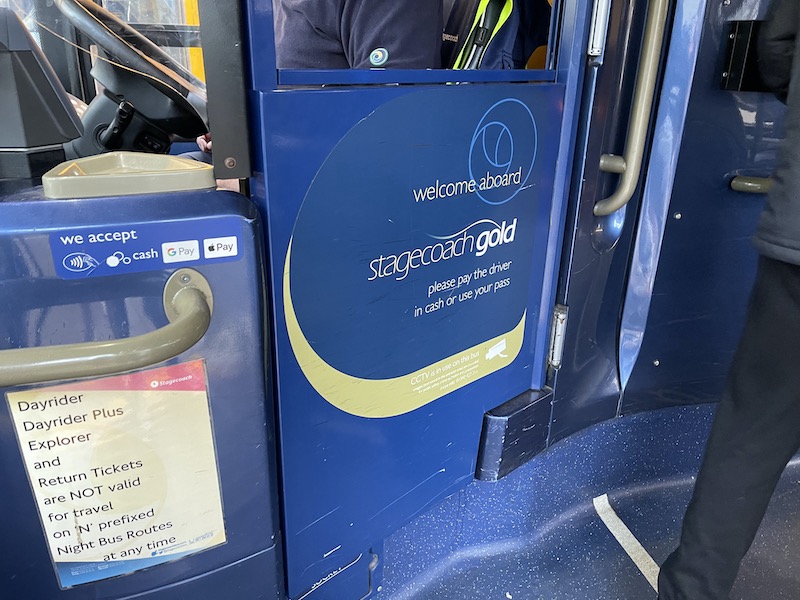 Following my highlighting of North Yorkshire Council’s restrictive policy of only accepting cash on board its buses in a recent round up I came across a similar approach with Somerset Council’s bus operations in Taunton. The rather unfriendly notice indicates “we cannot allow you to travel” if you only have contactless cards. Rather a contrast with London where the opposite is the case.