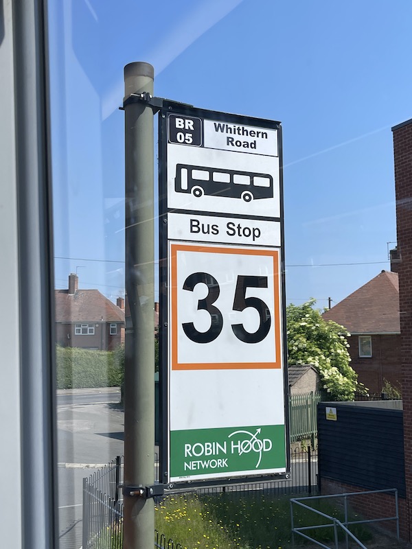 And while on large signs, I couldn’t help notice the difference in bus stop flag presentation between Devon and Nottingham on recent visits. While Devon helpfully adds the destinations for each route it does tend to make for very small print size …