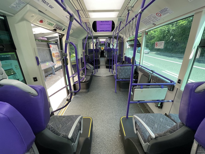 Carrying capacity is 105 passengers with 42 seats and space for wheelchairs as well as buggies and shopping trolleys.