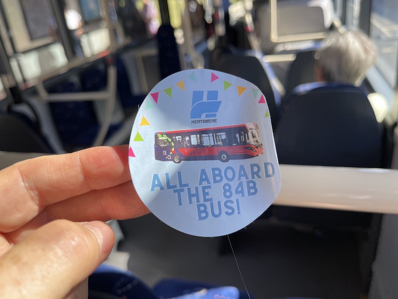It turned out there’d been an official launch involving local dignitaries, speeches, photo line ups with cake, stickers and timetables as the bus left Potters Bar and many locals had turned out to show their support and were now all taking a ride.
