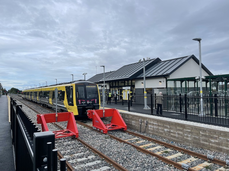 So despite the razzmatazz of a brand new station opening, passengers using the line are suffering a halving of their service until more battery trains become available. Another rather dodgy aspect of the new (temporary) arrangements is a very tight connection between arriving Northern trains from Wigan and departing Merseyrail trains to Liverpool. The former arrive at 38 minutes past the hour and the latter leave at 39 minutes past.