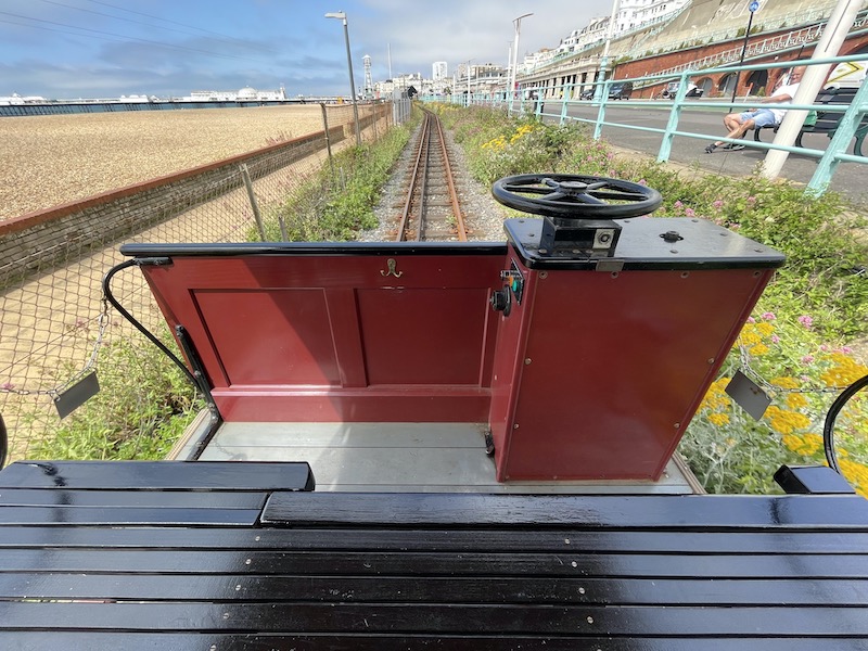 The mile long railway is “the world’s oldest working electric railway” having begun in 1883 by the pioneer inventor and electrical wizard Magnus Volk. It’s been running from the Aquarium east of Brighton Pier to west of what’s known as Black Rock ever since.