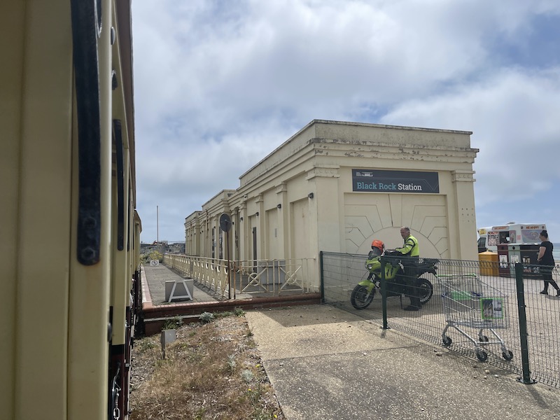 .,,, and there’s often been talk of extending the line there including at one time high flying ideas of a monorail, but it’ll never happen. And there’s something nice and quirky about the Black Rock platform being in splendid isolation among parked up coaches on day trips.