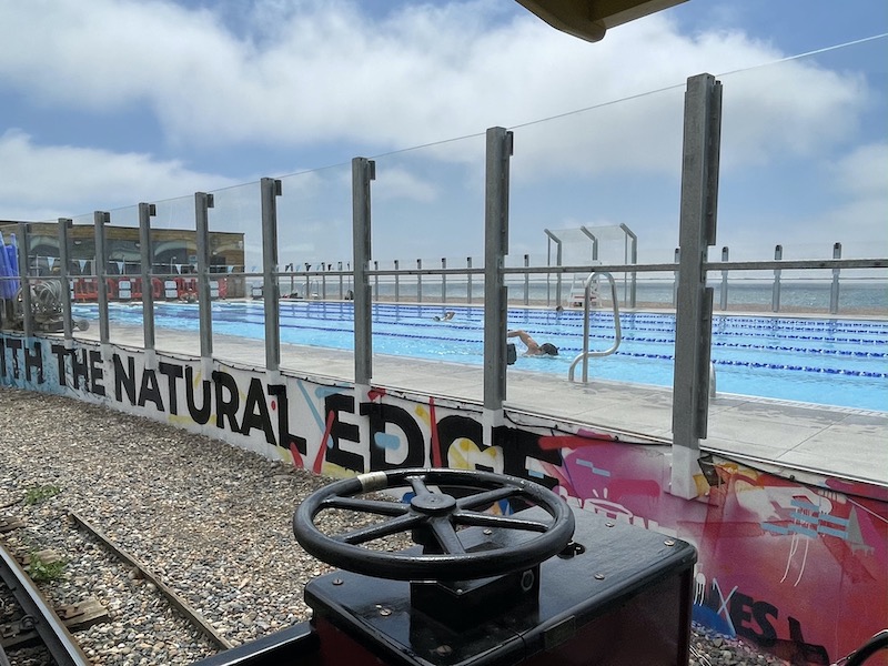 … making for interesting races between the trains and swimmers.