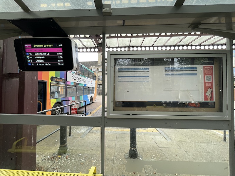 … and at Drummer Street bus station’s Bay 3 in Cambridge