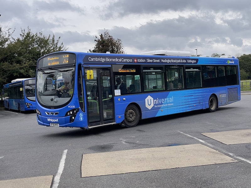 Flagship route in Whippet’s portfolio is the Universal branded route running between Eddington as well as West Cambridge via the city centre and railway station to the Biomedical Campus and Addenbrooke’s Hospital.